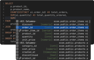 Query results are presented in a grid that allows for further manipulation, as text perfect as LLM input, or as charts for simple analysis.
