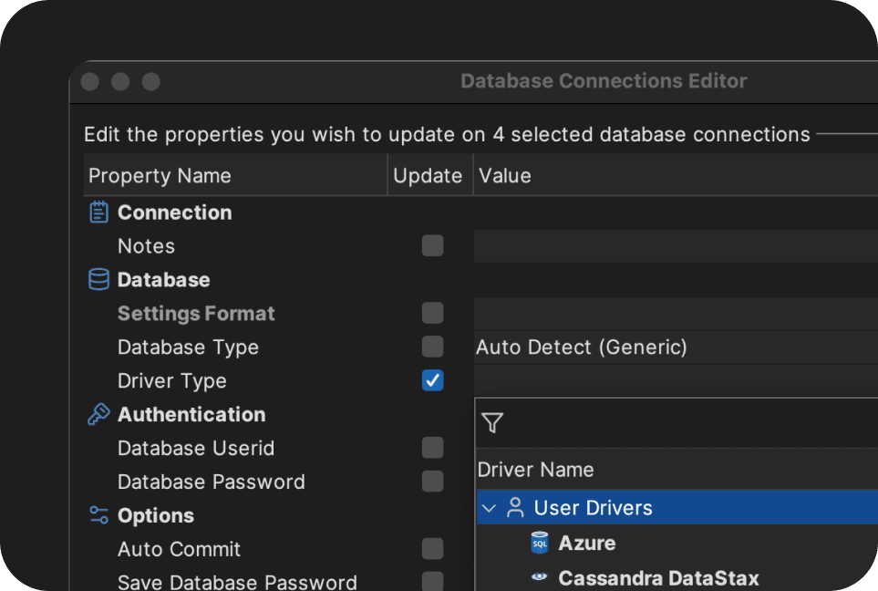 Build queries by dragging and dropping tables and selecting rows in an interactive dialogue.