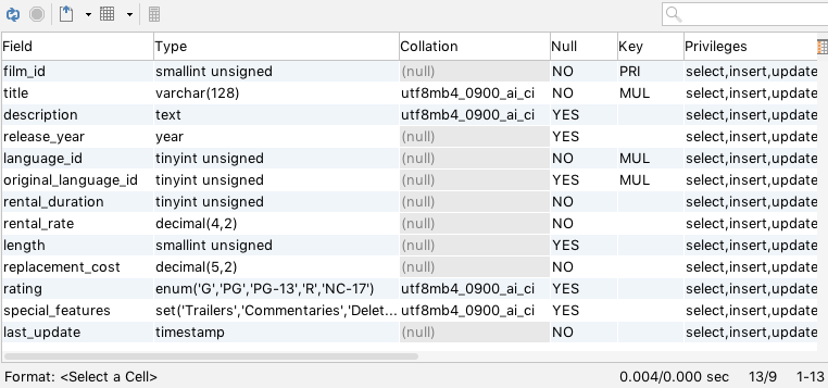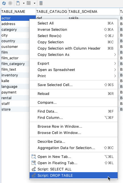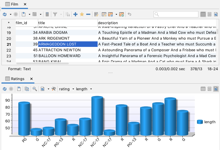 The table-data viewer shows the data for a table in a grid with various features such as filtering and editing (if licensed) functionality. This viewer is referred as Data tab in the DbVisualizer UI.