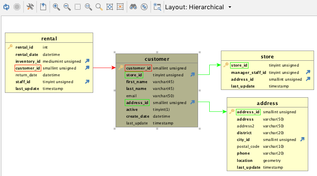 The tables-refs viewer shows the references graph for several tables in the result set (the result set must contain objects supporting referential integrity constraints, such as a Table). Here is a sample of the XML for the tables-refs viewer: