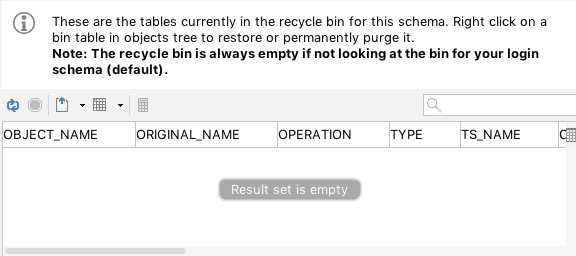 <DataView id="oracle-recyclebin-recyclebin" icon="RecycleBin" label="Recycle Bin" viewer="grid">