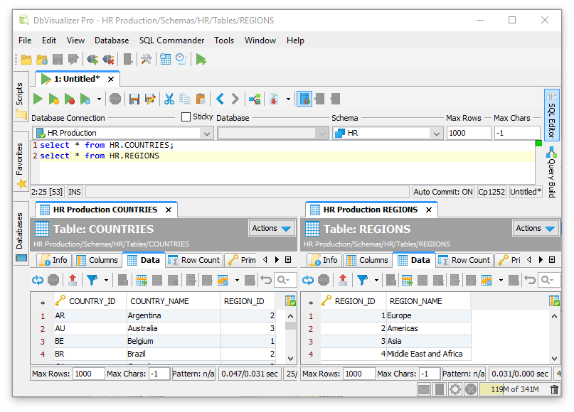 You can move the tabs around by drag and drop. This allows you to see the content of multiple tabs at the same time